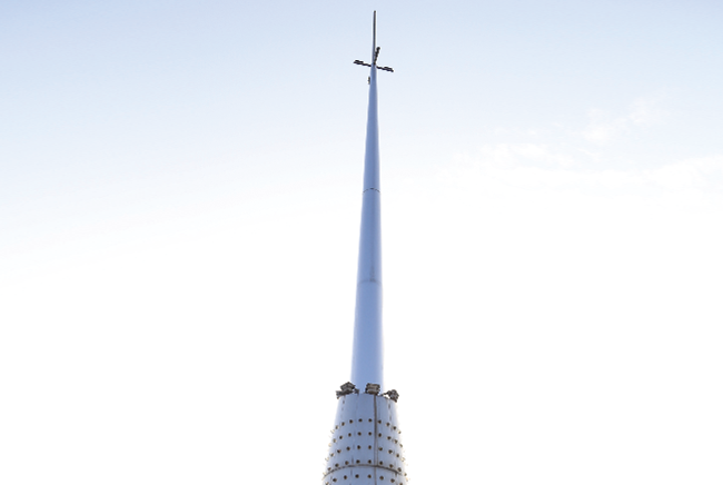 以春筍打開願景的天空,象徵竹南科學園區新希望的座標。
