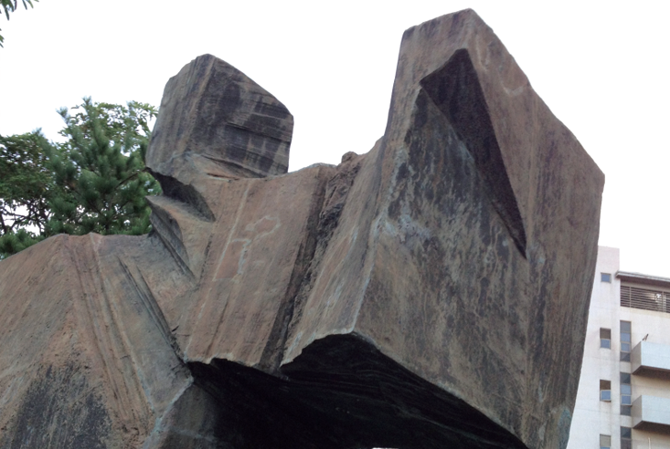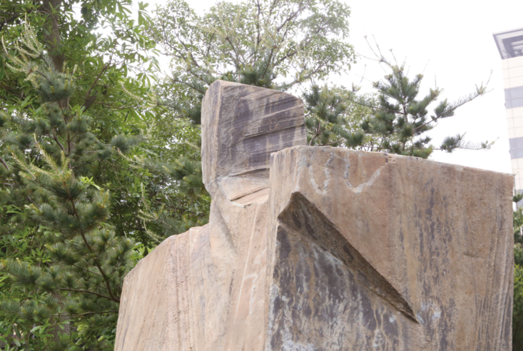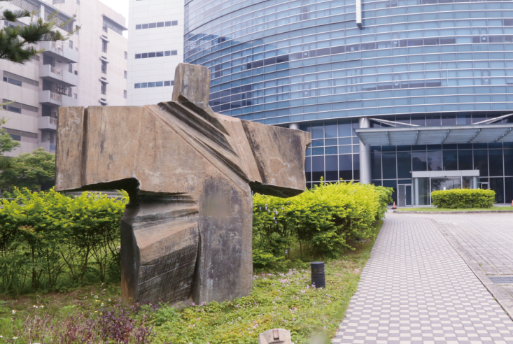 | 'Shizishou'. a movement in Tai-Chi, with hands horizontal and body straight, represents return to original static state from dynamic state in a simple and sleek form. Ju, Ming also applied his swift carving skills with electric saw to add some rough lines on the chest of the sculpture, implying the image of a collar. This maneuver not only brings variety to the form, but also casts a strong visual impact on the viewers, which leads the focus on higher part of the sculpture, conveying the sublime quality with its stable image. |