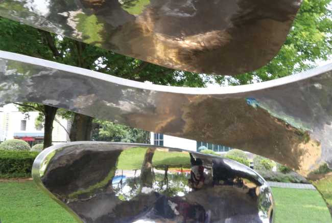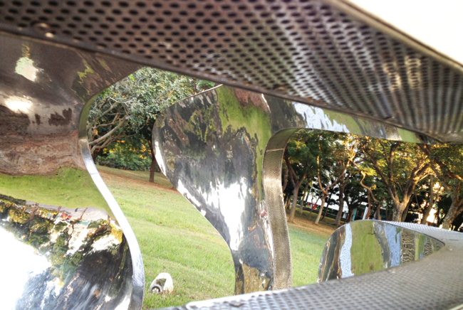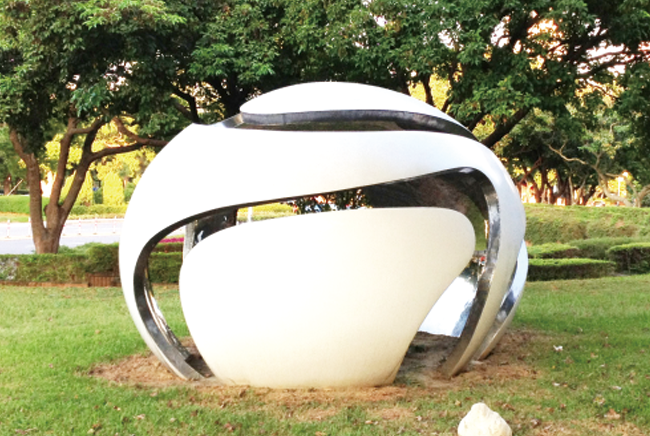 | The streamline illustrates the 'abundance and diversity' with scientific touch. The egg-shaped space is a miniature analogue of the sky, offering a quiet space for meditation and imagination. Creating a world as a globe, the artwork not only emphasizes its interaction with the viewers, but also conveys its message of the value of local environment and culture. The simple form of stainless steel also yields a sense of professionalism, ushering the concept of 'street furniture' to enhance delightful and practical characters of this artwork and symbolizing a combination of art and environment. |